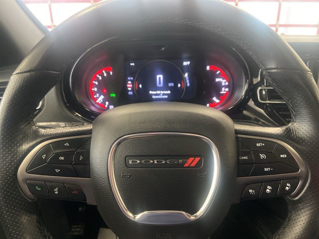 Under the hood, you'll find a powerful 3.6L V6 24V VVT engine mated to an 8-speed automatic transmission and all-wheel drive, delivering an impressive 18 city/25 highway MPG. This Durango's spacious interior and versatile seating configuration make it the perfect choice for families or adventurers alike.