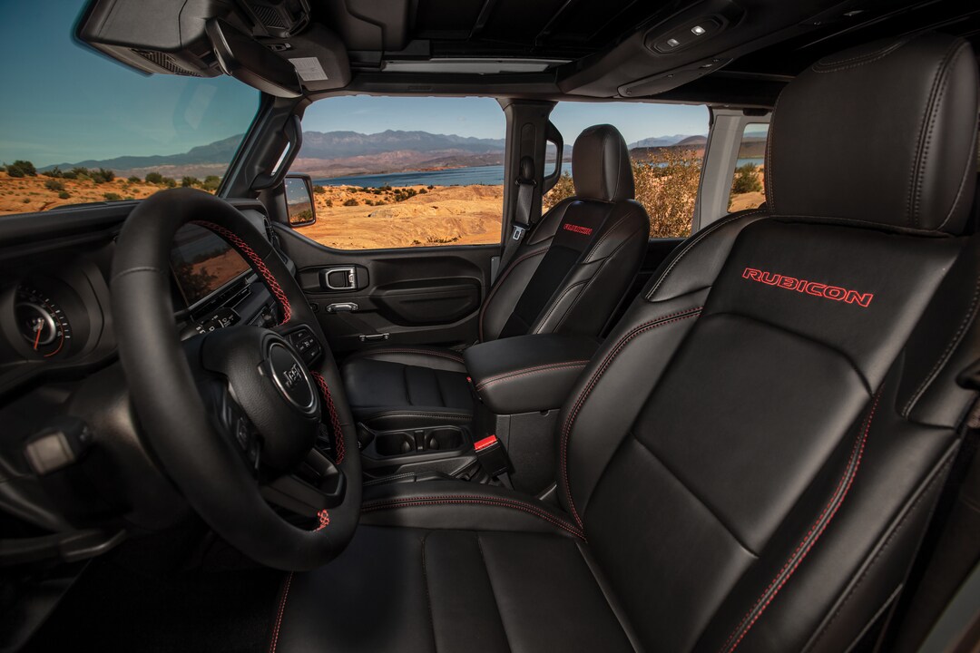 Explore the 2026 Wrangler's interior, which combines ruggedness with modern comforts. It offers seating for four or five, based on the body style. Options include Nappa leather, heated front seats, and power-adjustable seats for both driver and passenger. The rear seats fold and tumble for flexible cargo space, while all-weather mats and drain plugs simplify cleaning after outdoor activities. Drivers in Elmira will value features like removable doors and a fold-down windshield, preserving the classic open-air experience.